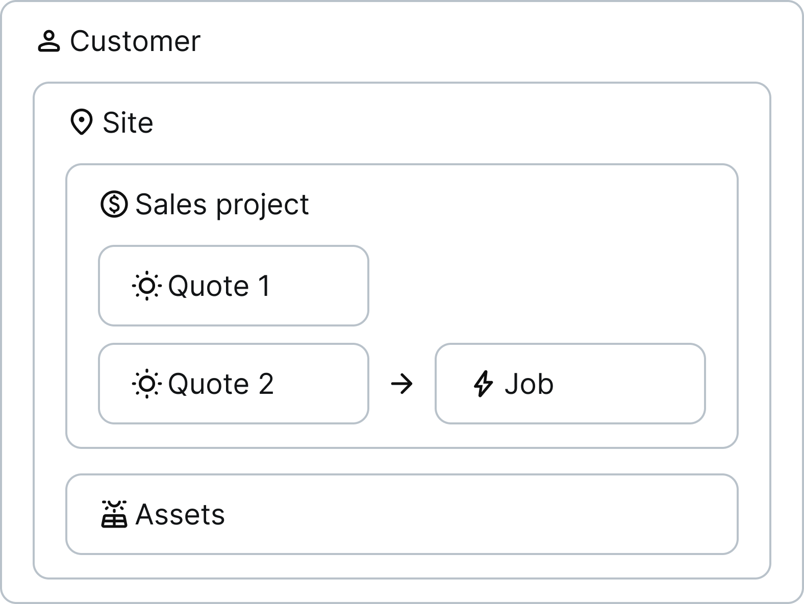 A quote details the system that you've designed for a sales project. Each sales project can contain multiple quotes.